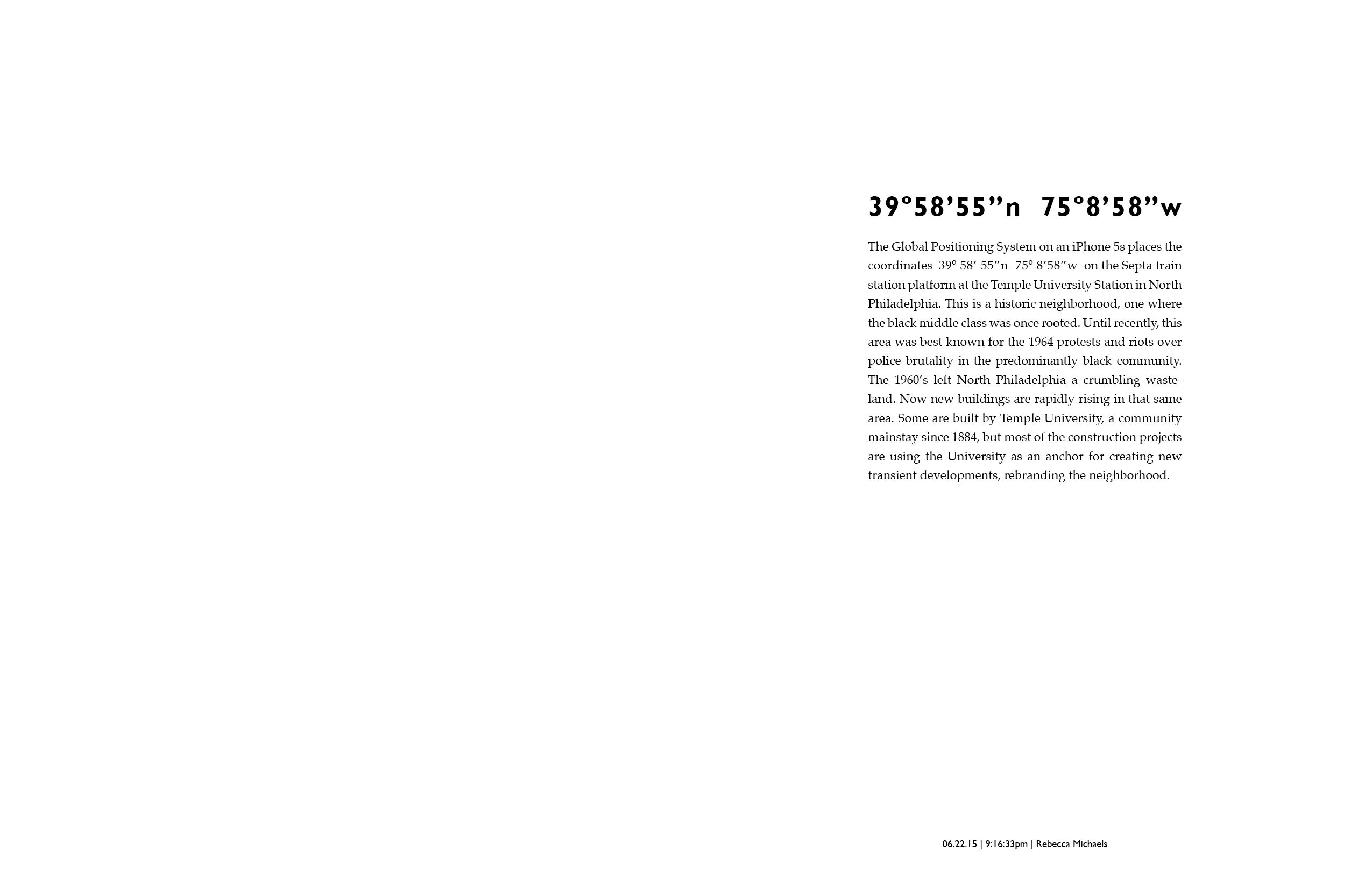 39º58’55”n 75º8’58”w : select pages from the book